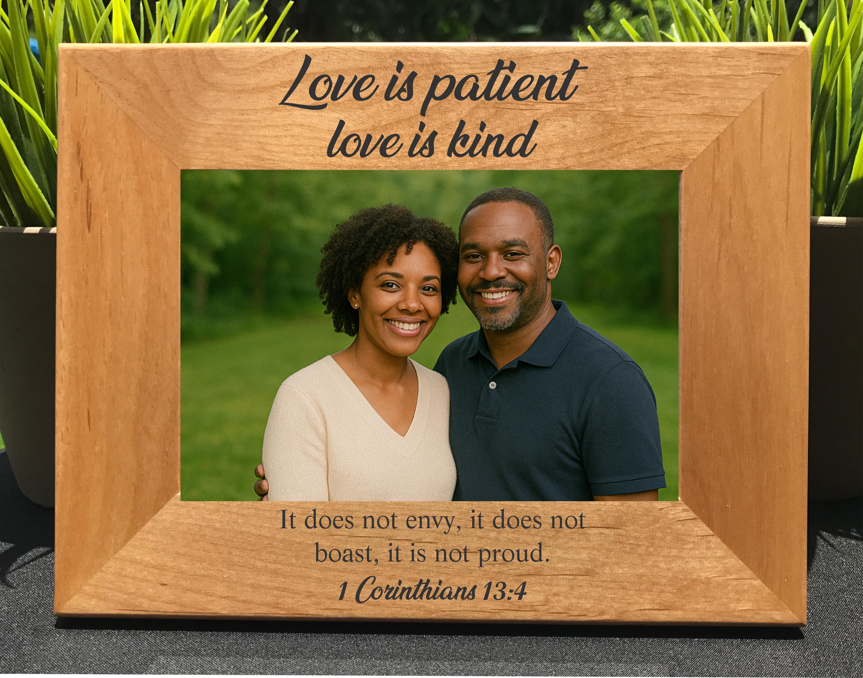 Celebrate your faith with a beautifully engraved custom Bible verse picture frame – a meaningful gift for loved ones or a cherished keepsake for your home. Each frame is expertly crafted and personalized with the scripture of your choice, creating a timeless reminder of God’s word. Whether it's a heartwarming family portrait, a candid moment, or a holiday snapshot, our personalized frame adds a touch of elegance and warmth to your home décor.