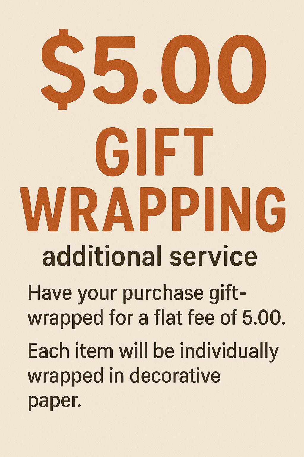 Purchase this item to have your purchase gift wrapped with love. This add on is $5 for each item purchased.