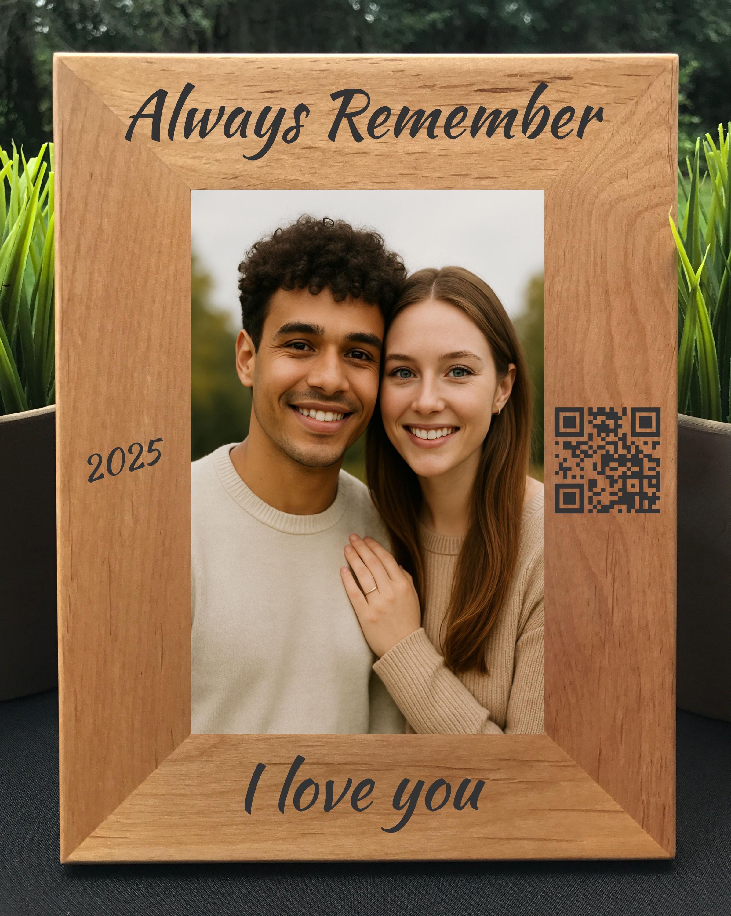 -Interactive QR Code – Your frame includes a clean, laser-engraved QR code that links to your personal video.
