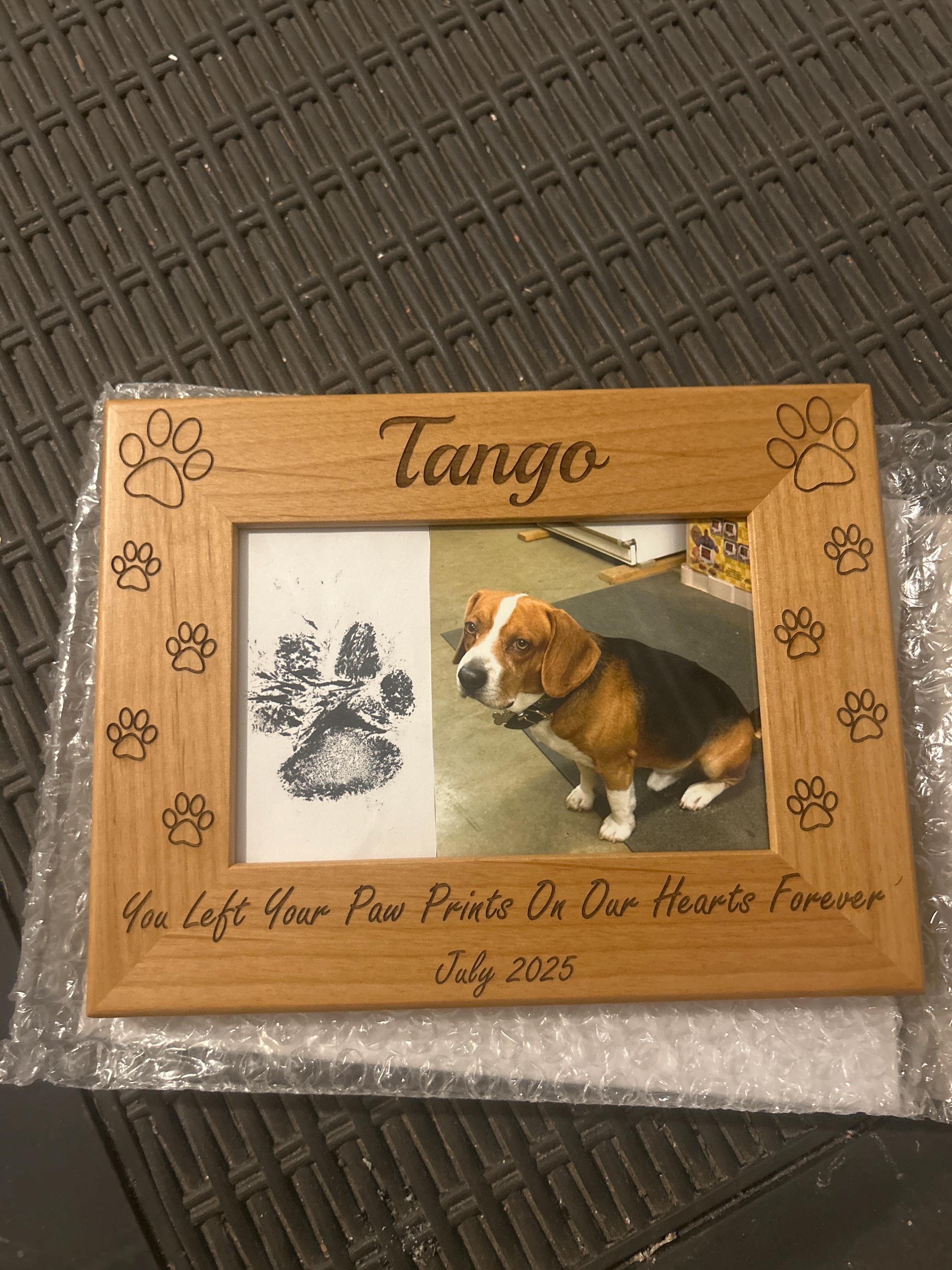 Honor the cherished memories of your beloved pet with our Custom Engraved Photo Frame, a beautiful and thoughtful keepsake designed to celebrate the special bond you shared. This personalized frame features custom engraving, allowing you to add your pet’s name, a heartfelt message, or important dates, making it a one-of-a-kind tribute. Perfect as a sentimental gift for a friend or a meaningful way to keep your own dog’s memory alive, this timeless piece ensures your furry friend’s spirit will always be close to your heart.